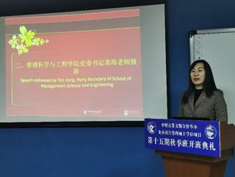 接下来,学院党委书记姜涛老师对十五期秋季班同学们表示了热烈的欢迎。姜涛书记结合自身的管理经验,告诫同学们在项目学习过程中要处理好两个关系:工作和学习的关系,学生和项目管理老师的关系。同时,姜涛书记鼓励同学们作为中财校友,在工作和学习之余积极参加学校和学院的各项活动,学会利用学校的优质资源,体验丰富多彩的校园生活,感受校园文化氛围。