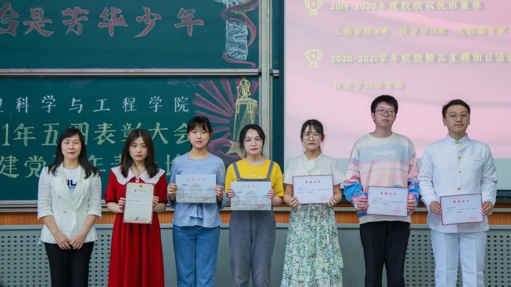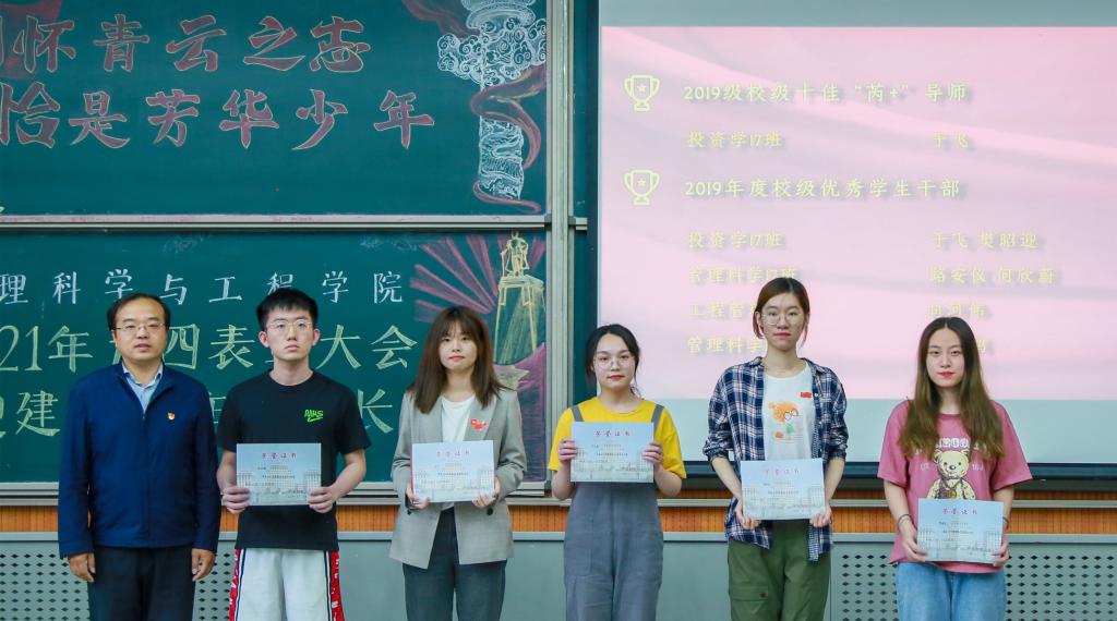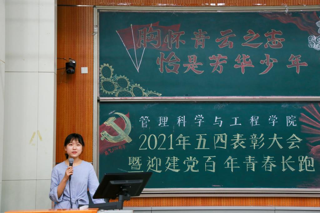 在五四青年节之际,为深化学习贯彻习近平总书记在纪念五四运动100周年大会上的重要讲话精神,学习传承五四精神,加强青年学生党史学习教育和社会主义核心价值观培育,展现学院青年风貌,5月12日下午两点,“胸怀青云之志,恰是芳华少年”beat365英国官方网站2021年五四表彰大会暨迎建党百年青春长跑活动在学院4号楼107隆重举行。学院党委书记姜涛、院长刘志东、党委副书记贾传亮、学院党建与业务创新部主任、学生工作办公室主任、17级本科生辅导员薄璐、18级本科生辅导员马冰出席大会。大会由学院团委书记高舒娅主持。