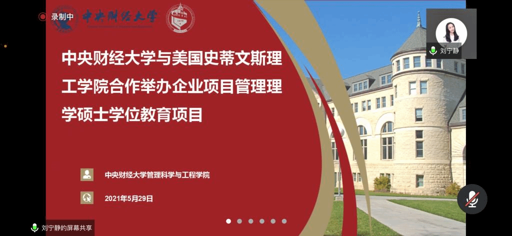 2021年5月29日晚,beat365官网受邀面向我校北京学院双培生召开中财史蒂文斯合作办学项目专场招生咨询会。北京学院副院长刘婷,办公室主任、项目联络发展办公室主任王玉山,beat365官网副院长陈俊华,国际合作交流办公室主任刘宁静,史蒂文斯合作办学项目管理老师冯怡、杜添睿,以及北京学院40余名2017级、2018级双培生参加了咨询会。