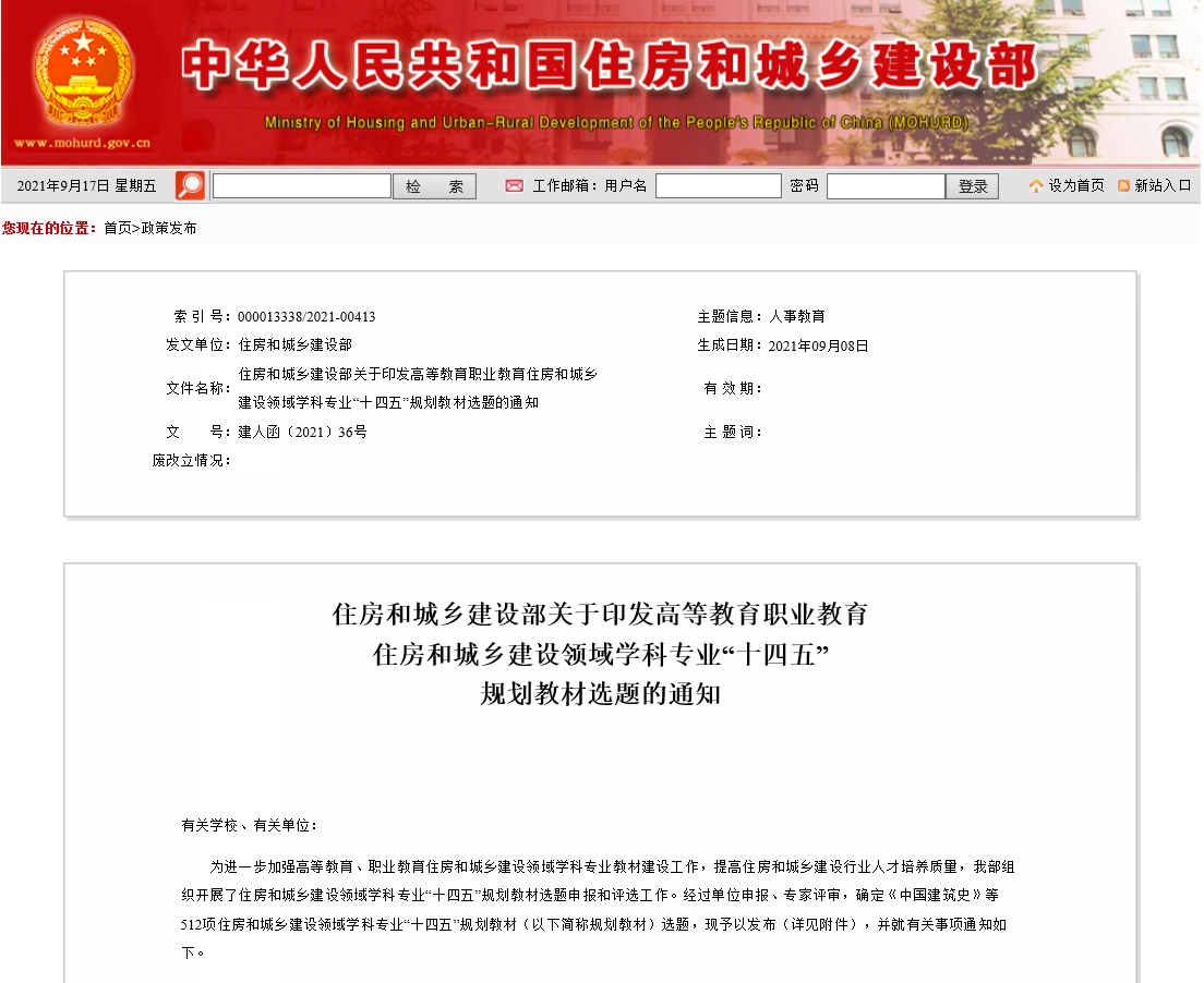 近日,住房和城乡建设部组织开展了住房和城乡建设领域学科专业“十四五”规划教材选题申报和评选工作。经过单位申报、专家评审,确定了512项住房和城乡建设领域学科专业“十四五”规划教材选题。beat365官网城市与房地产管理系陈俊华教授主编的《商业地产运营与管理》,工程管理系王昊副教授主编的《建设法规:案例与实务》2部教材被批准立项建设。