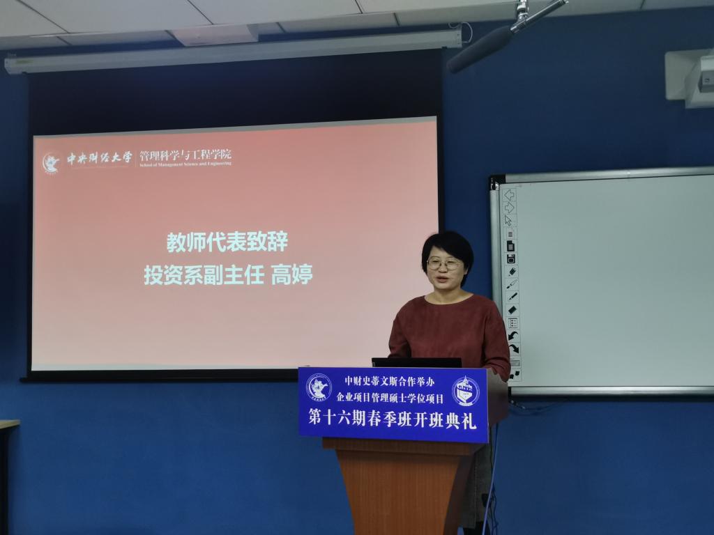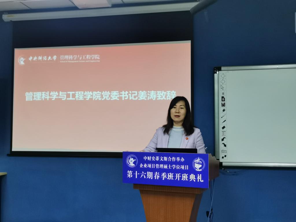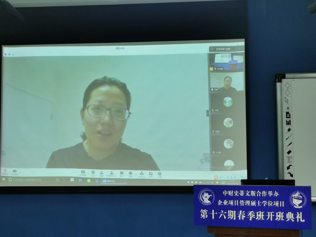 在接下来的致辞中,学院党委书记姜涛对十六期春季班同学们表示了热烈的欢迎。姜涛强调,作为beat365英国官方网站硕士层面唯一的中外合作办学项目,中财史蒂文斯企业项目管理硕士项目拥有一支高水平的授课教师团队,外方教师全部为史蒂文斯理工学院的资深教师,中方教师全部具有海外留学背景,同时学院下设国际合作交流办公室,专职负责项目的日常管理工作,保证了较高的项目管理水平。姜涛书记谈到全球新冠疫情对项目的授课和管理造成的挑战,她告诫同学们要积极适应新的学习模式,主动改变自我迎接挑战。同时,姜涛鼓励同学们作为中财校友,在工作和学习之余积极参加学校和学院的各项活动,学会利用学校的优质资源,体验丰富多彩的校园生活,感受校园文化氛围。