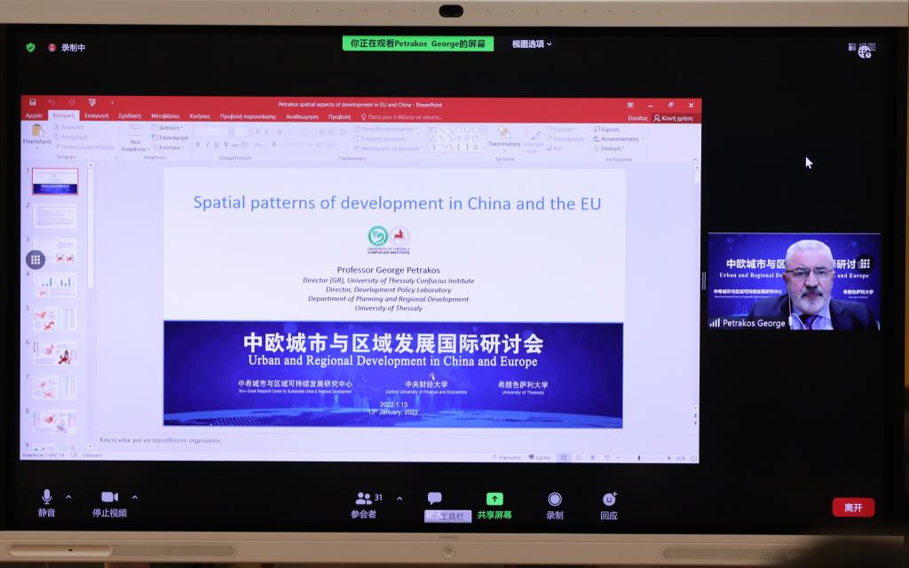 1月13日,由beat365英国官方网站和希腊色萨利大学在希腊色萨利大学孔子学院共同设立的中希城市与区域发展研究中心组织召开了中欧城市与区域发展国际研讨会,会议由beat365英国官方网站承办。受全球疫情影响,本次会议采用线上线下相结合的方式进行。来自中国、希腊、英国等10余所高校和研究机构的50余名专家学者参加会议,共同探讨中欧城市与区域发展的前沿进展,研讨会实况在国际媒体网站同步直播。