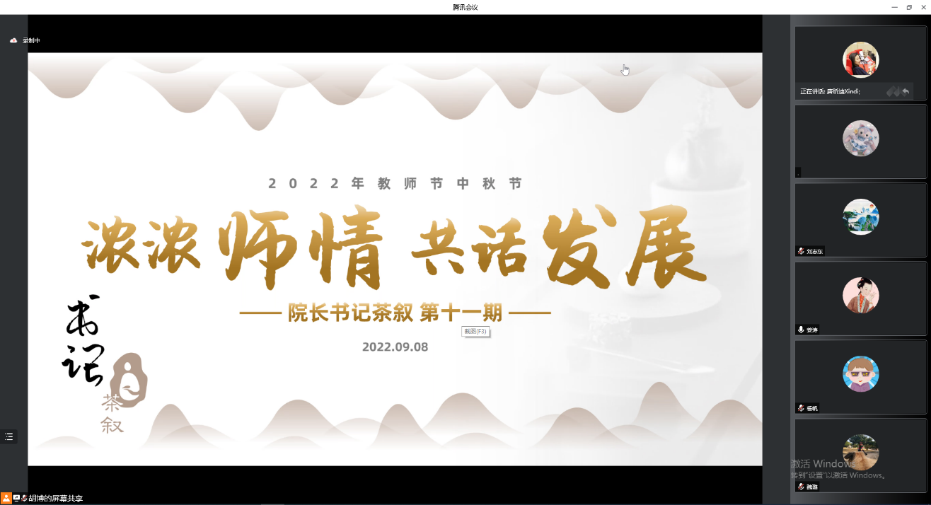 为庆祝第38个教师节,beat365英国官方网站院长书记茶叙第11期——2022年教师节座谈会于9月8日下午通过腾讯会议的方式线上举行。院长刘志东、学院党委书记姜涛,系主任、教工党支部书记、中青年教师、海归教师、行政教师、新入职教师等各教师群体代表参加座谈。姜涛主持会议。