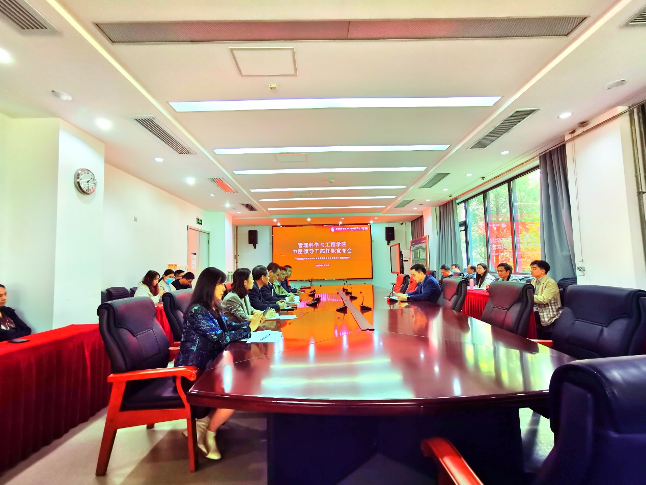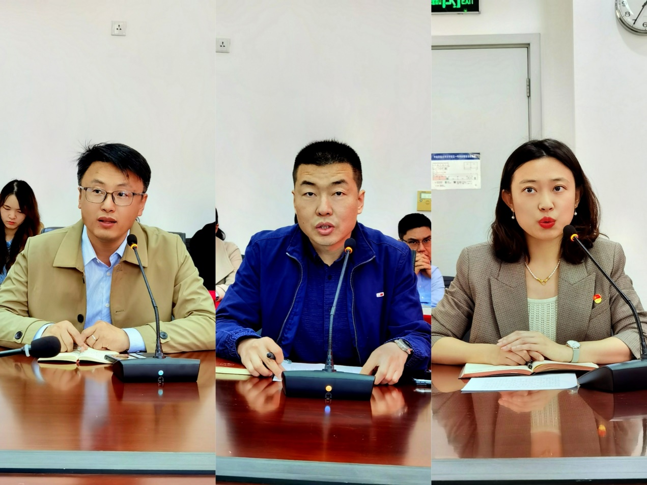新任中层干部作表态发言。李玉龙作了三点表态:一是全心全意为师生服务;二是落实好学院分配的各项工作;三是勤奋工作、认真学习,力争为学院的学科发展上升贡献力量。用实际行动践行诺言,定不辜负组织和老师们的信任与期待。荆中博感谢学校、学院领导的培养,感谢全院老师的信任与帮助,并作了三点表态:一是守纪律,讲规矩;二是保持学习,尽职履责;三是清正廉洁,自立自重。胡博作了四点表态:一是加强学习,政治理论与学科专业并重;二是担当责任,敢担当、敢创新、敢攻坚克难;三是凝心聚力,团结全院师生做好各项工作;四是廉洁自律,维护风清气正的政治生态。