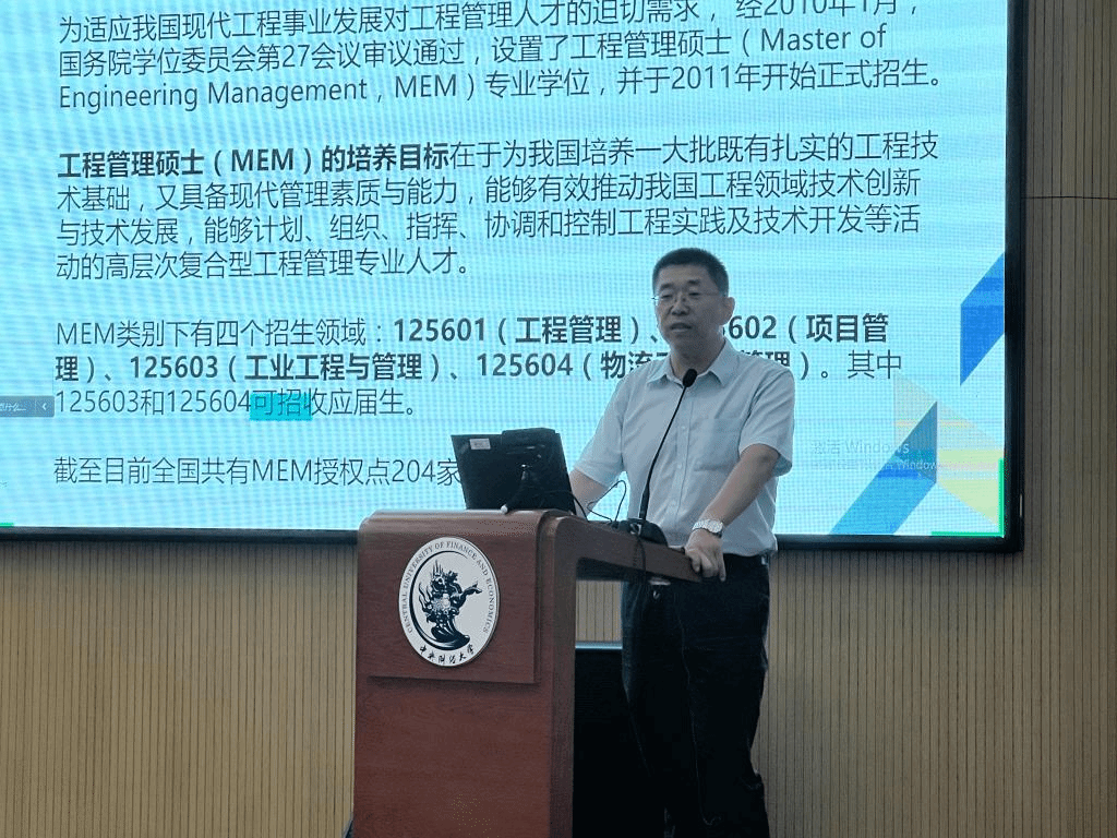 林则夫教授作为MEM项目主任汇报了中财大MEM各方面情况。他对项目办学理念、MEM历年报考情况、培养目标、课程设置等内容信息做了全面解读。他介绍到,项目结合学校财经优势和行业特色,专注于培养具有财经特色、既懂工程技术又懂管理,既能从事经济管理领域中的工程技术性工作,又能从事工程领域的经济管理工作的应用型、复合型专门人才,现设有工程投资管理、科技投资管理、量化投资管理三个特色方向。项目有着模块化课程体系和特色化的教学模式,汇聚学界和业界专家的师资团队,拥有多元化的对外交流机会和广泛的校友网络。