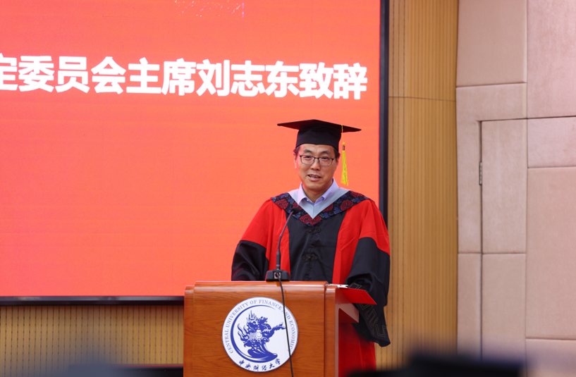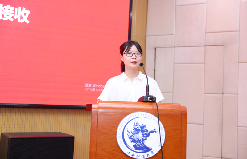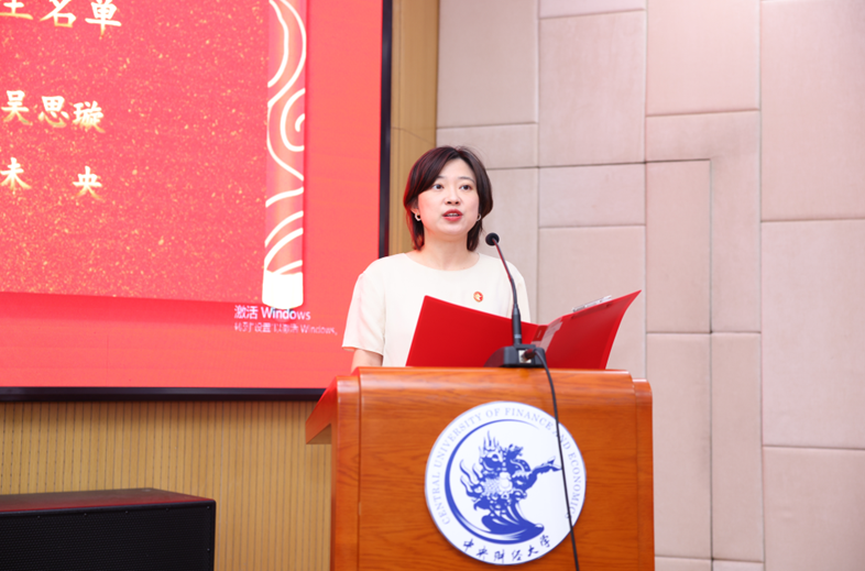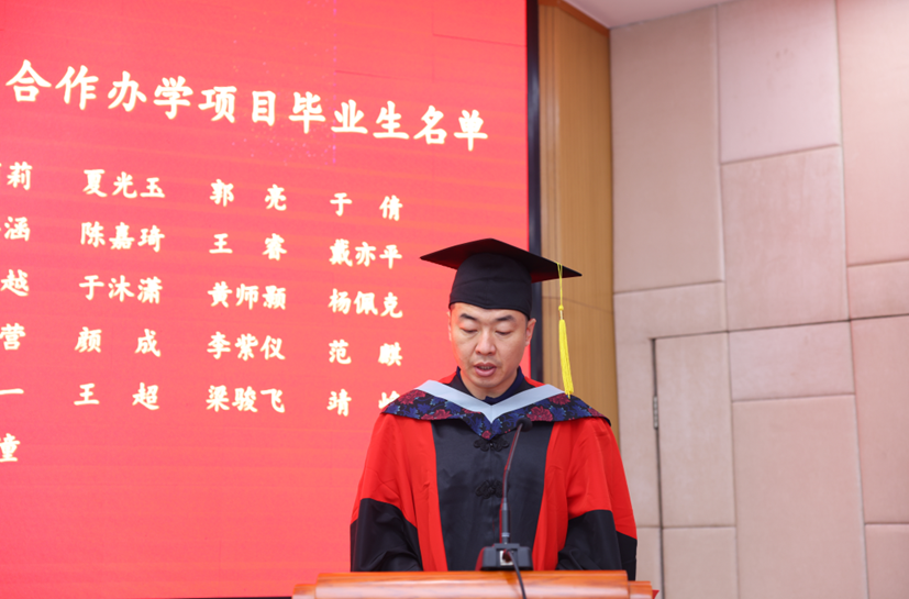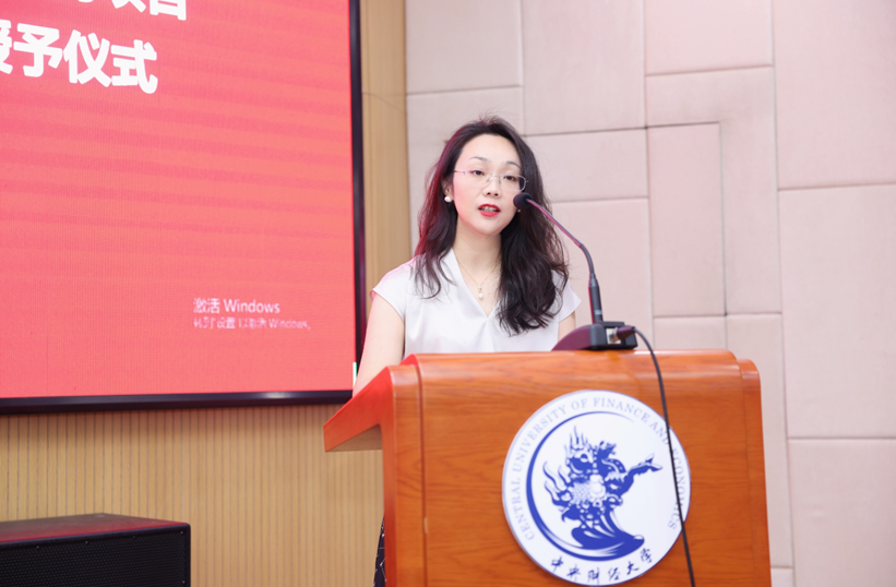 在新校友接收仪式环节,学院国际合作交流办公室刘赣玮老师宣读了《新校友接收词》,真诚欢迎项目各位毕业生加入中财史蒂文斯项目校友的大家庭。