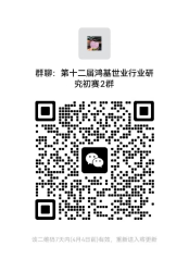 大赛微信群:以下二维码为第十二届鸿基世业行业研究大赛参赛群,请有意向参赛的同学扫码入群,入群请备注专业-年级-姓名。
