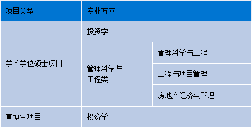 本专业博士生导师研究方向包括:科技投资与融资、系统工程与投资管理、区域投融资与区域经济、房地产投融资理论与政策、绿色投资与可持续发展、投融资理论与政策。直博生是进入我校攻读投资学博士学位的主要途径,基本期限为五年,授予经济学博士学位。