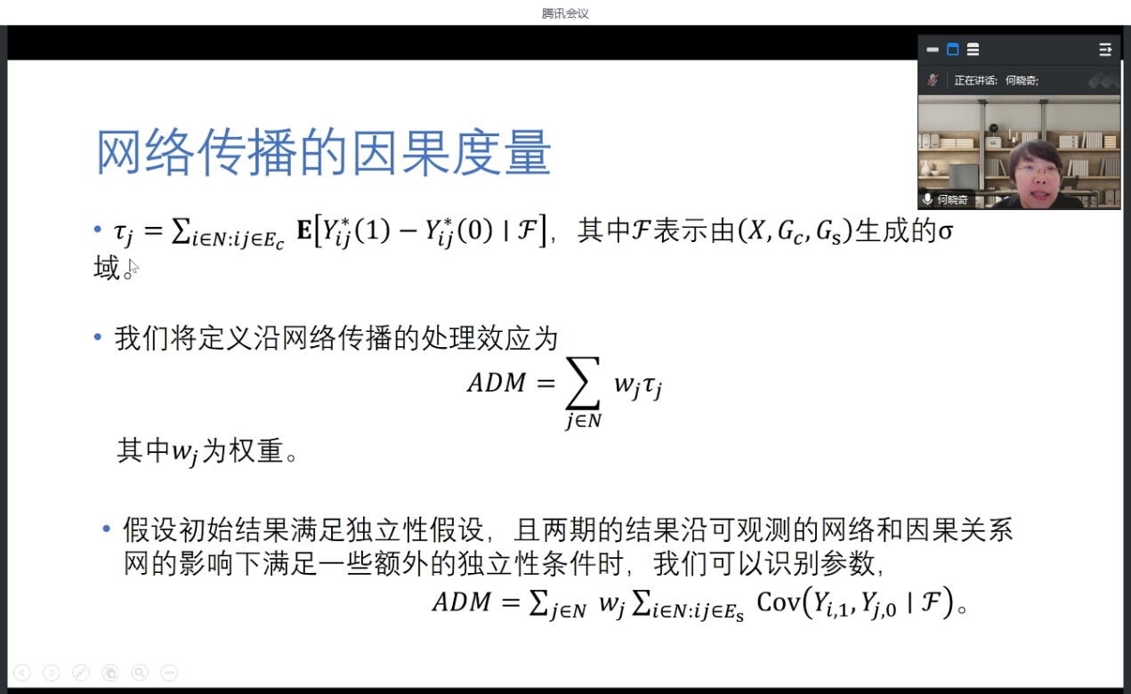 第二场学术讲座由beat365官网何晓奇助理教授主讲。讲座分为两部分,第一部分介绍了在顶级经济学期刊The Review of Economic Studies接收发表的研究成果“Measuring diffusion over a large network”, 论文主要分享了建模过程,该论文的主要贡献是在社会网络模型下,确立了个体行为交互影响的溢出效应是来自于关系网络,而不是个体特征,或者其他的环境相关性造成的,这对推动因果关系在网络溢出效应的理论发展具有重大意义。第二部分分享了自己的研究历程和一些心得体会,研究需要有兴趣也需要有毅力,此外踏实的基本功,持续的文献梳理和学习都是研究的必要手段,借此与同学们共勉!
