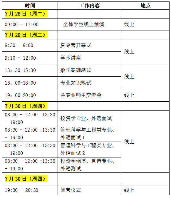(1)时间:2020年7月30日 8:30-12:30 ;13:30-19:00