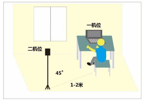(6.3)硬件要求:考生“双机位”要求。初试笔试、复试面试均需要准备双机位。“第一机位”采集考生音、视频源(考生正前方);“第二机位”采集考生“第一机位”显示器及考生所处环境的整体情况(远端)。“第二机位”须可自由移动,考试过程中考生须根据考官指令随时变换机位位置。“双机位”涉及的硬件设备的电脑桌面以及手机不得存放考试相关的电子资料。考生需要准备可以支撑“双机位”运行的硬件,即需要两部带摄像头的设备及附件,包括笔记本电脑、手机、手机支架、摄像头、麦克风和音响等。第一机位(建议电脑端)从正面拍摄,放置在距离本人30cm 处,确保拍摄到本人上半身、表情、眼神、身后环境;第二机位(建议手机端或者电脑端)从考生侧后方45°距离本人30-80cm 处拍摄,确保从考生身后完整拍摄到考生全身、主机位完整屏幕。手机须在考试期间切断电话、短信服务, 屏蔽或拦截所有来电,关闭除考试软件外的一切可影响考试的自启动 app(如 QQ 等语音软件)。用于网络远程考试的手机原则上不能是考生联系方式的手机号码和应急手机号码使用的手机。副机位在考试期间仅开启视频,须关闭麦克风,确保仅主机位传递音频,防止造成混响,同时将设备调整成静音,防止副机位意外放音干扰考生考试。 如遇主机位故障,考生须立即打开副机位音频,通过副机位完成考试。手机在考试期间应保持电量充足,同时提前充值,防止因话费不足被移动信号供应商切断服务。