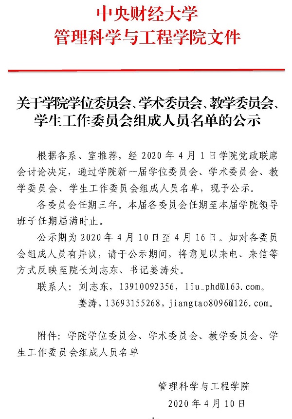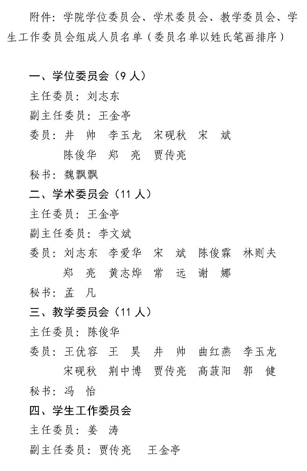 关于学院学位委员会、学术委员会、教学委员会、学生工作委员会组成人员名单的公示