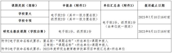 申报学校重大研究生教育教学改革课题、学校专项研究生教育教学改革课题的老师请填写附件2、附件3发送至邮箱ggxy_ygb@163.com ,截止时间2023年7月6日16时前,学院会对申报材料严格把关,择优推荐;