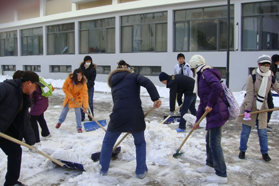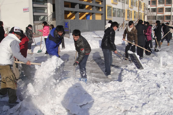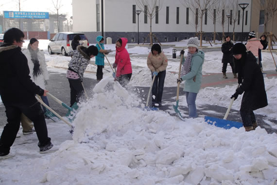 同学们不畏严寒,清扫积雪