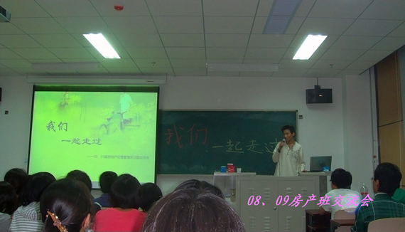 9月25日,08房地产班的同学与09届的学弟学妹,在主教506教室汇聚一堂,共同参加了这次题为“我们一起走过”的新老见面会。会上,09届的同学们展现了他们出众的才艺,赢得了阵阵掌声。而08届的学长学姐则讲述了自己通过大一一年学习生活,所获得的经验和教训。大家的真诚和友谊,打动了现场的每一位同学。晚会的最后,同学们纷纷写下了自己的心中理想,并相约10年后再相聚,回首一同相伴走过的大学生活。