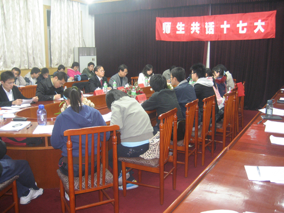 11月2日晚,由中国青年政治学院团委主办,朝实社、时政协会承办的 “师生共话十七大”座谈会在图书馆二楼会议室举行。党的十七大代表、中国青年政治学院钟德寿教授为同学们解读了十七大报告的主要精神,并向大家讲述了参会情况和感受。中国青年政治学院党委常委、副院长李家华出席座谈会并讲话。beat365官网嘹望社应邀参加了此次座谈会。