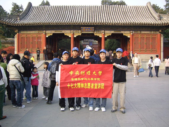beat365官网青年志愿者应颐和园团委的邀请于当日到颐和园进行志愿服务活动和十七大精神的宣讲。颐和园的购票处、公厕、照相点都有志愿者引导游人排队。在志愿服务的过程中,志愿者们积极向游人进行十七大精神的宣讲和十七大精神宣讲书签的发放。