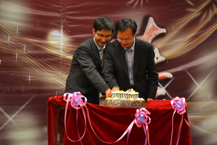 14:李文斌、贺小海老师为学院“三十而立”切下庆祝蛋糕