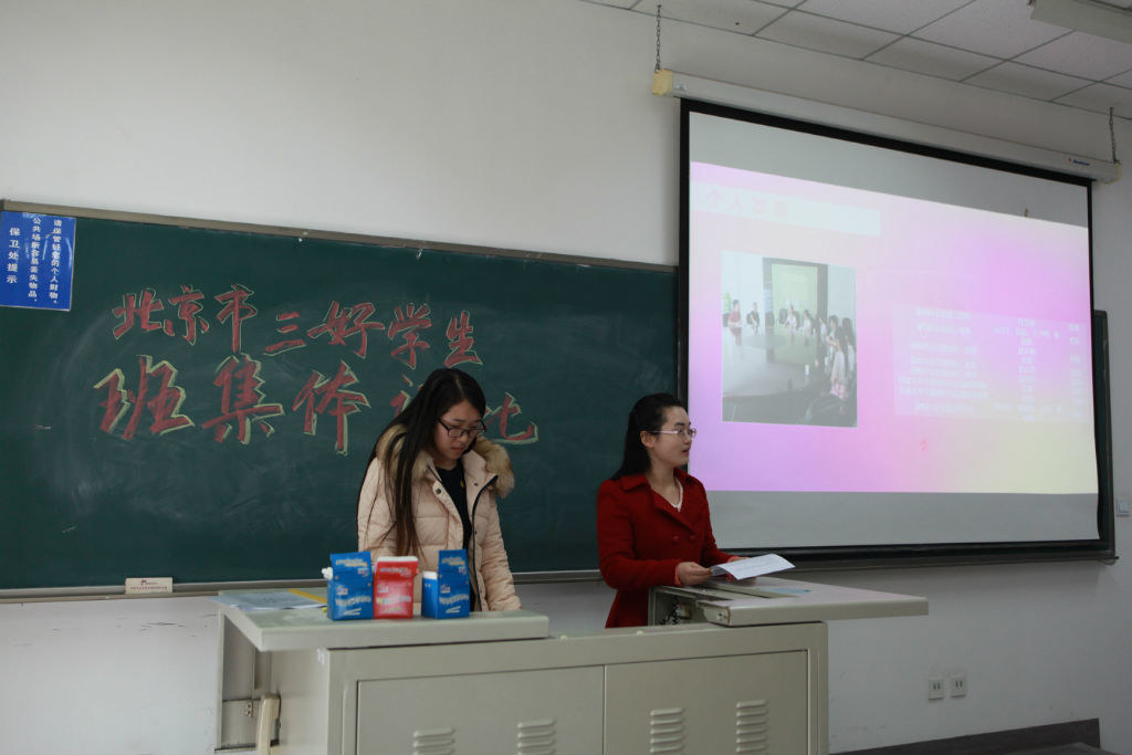 为了配合“北京市三好学生”和“北京市先进班集体”的推荐评选工作,促进班级和同学个人之间的交流学习,12月15日,学院组织申报班级和个人进行现场陈述和展示。学院党总支书记贺小海,党总支副书记贾传亮,组织员晏政,学公办主任张志祥、总支书记薄璐、13级辅导员林嘉祥、14级辅导员王思维到场观看。