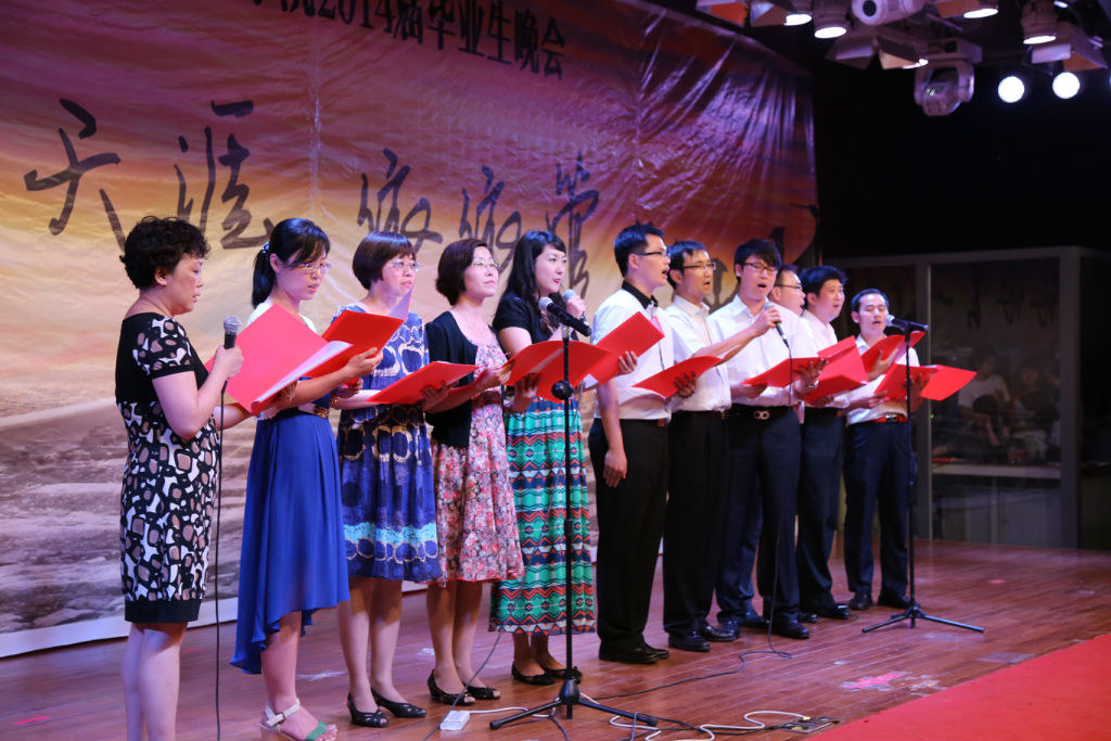 “水千条,山万座,我们曾走过,每一次相逢和笑脸都彼此铭刻,在阳光灿烂欢乐的日子里,我们手拉手啊想说的太多”。学院的老师们继去年为毕业生献唱《祝你平安》之后,今年又为我们带来了合唱《同一首歌》,老师们在唯美动听的歌声中,诉说着对毕业生的不舍和牵挂。学院党总支书记贺小海老师在合唱结束后寄语毕业生,希望大家在新的求学阶段或者工作岗位上,努力拼搏,越来越好,一路保重。