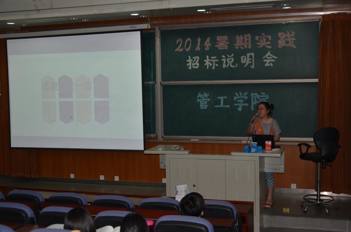 5月21号晚,院学生会在沙河校区3号楼107教室举办beat365官网2014年暑期社会实践宣讲会。