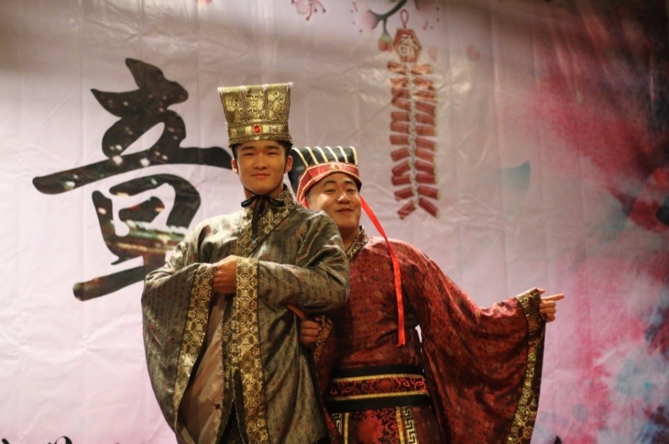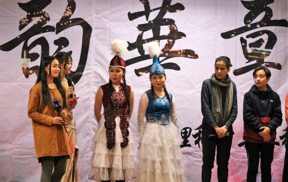 舞蹈之后,是管科14带来的一出默剧,讲述了在公交车上不甚正义的普通人与小偷斗智斗勇的故事,演员们中世纪英国绅士的装扮令人不禁想起了卓别林的经典造型,风趣幽默的表演中蕴藏着朴实的道理,传达了平凡人心中的真善美。随后,精彩的节目暂时告一段落,熟悉的背景音乐突然响起,原来晚会节目组还邀请了学院中来自各个少数民族的同学带来各具民族特色的拜年方式,从蒙古族,维吾尔族,藏族,土家族的独特语言,到彝族,哈萨克族精彩的才艺展示,再到来自宝岛台湾的新春问候,晚会的气氛更加融洽。