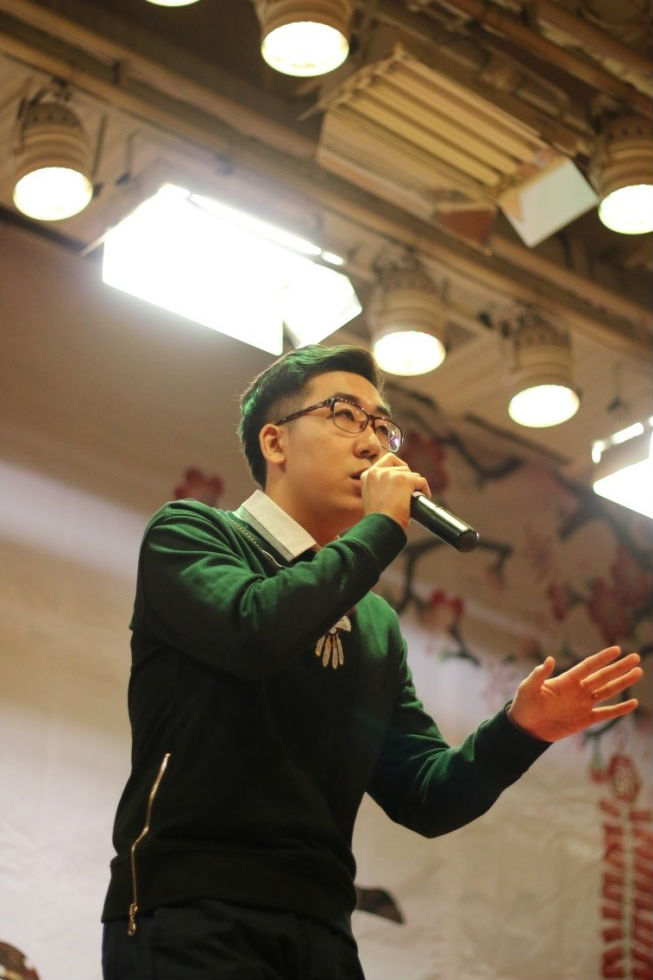 晚会正式开场。相声《我爱读书》逗得观众笑声不断,音乐才子殷岳献上一首歌曲《浪费》提醒同学莫要浪费青春时光,B-box社四位音乐达人带来PPAP与《一人我饮酒醉》串烧。