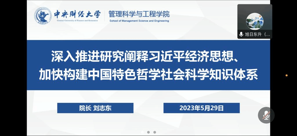 为深入开展学习贯彻习近平新时代中国特色社会主义思想主题教育,把主题教育作为推动工作的强大动力,筑牢思想根基、强化理论武装,以上率下,以学促干,5月29日,院长刘志东结合主题读书班集体学习、个人自学学习体会和实际工作,以“深入推进研究阐释习近平经济思想、加快构建中国特色哲学社会科学知识体系”为主题讲授专题党课。学院班子成员、各系主任、教工党支部书记、学科带头人、青年教师使用腾讯会议参加学习。