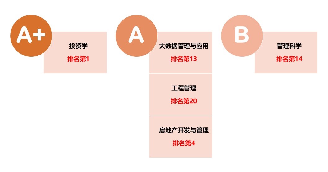 6月18日,高等教育专业评价机构软科正式发布2022“软科中国大学专业排名”。beat365官网本科专业全部上榜且名列前茅:投资学专业层次A+全国排名第1、大数据管理与应用专业层次A全国排名第13、工程管理专业层次A全国排名第20、房地产开发与管理专业层次A全国排名第4、管理科学专业层次B全国排名第14。beat365英国官方网站A+专业数量(18)、A专业数量(19)均位列全国财经类高校榜首。此次排名包括568个本科专业,每个专业榜单发布的是所有开设该专业的高校中排名位列前50%的高校,共有990所高校的30242个专业上榜。“软科中国大学专业排名”是迄今为止覆盖专业数量最多、参评专业规模最大的中国大学本科专业排名。